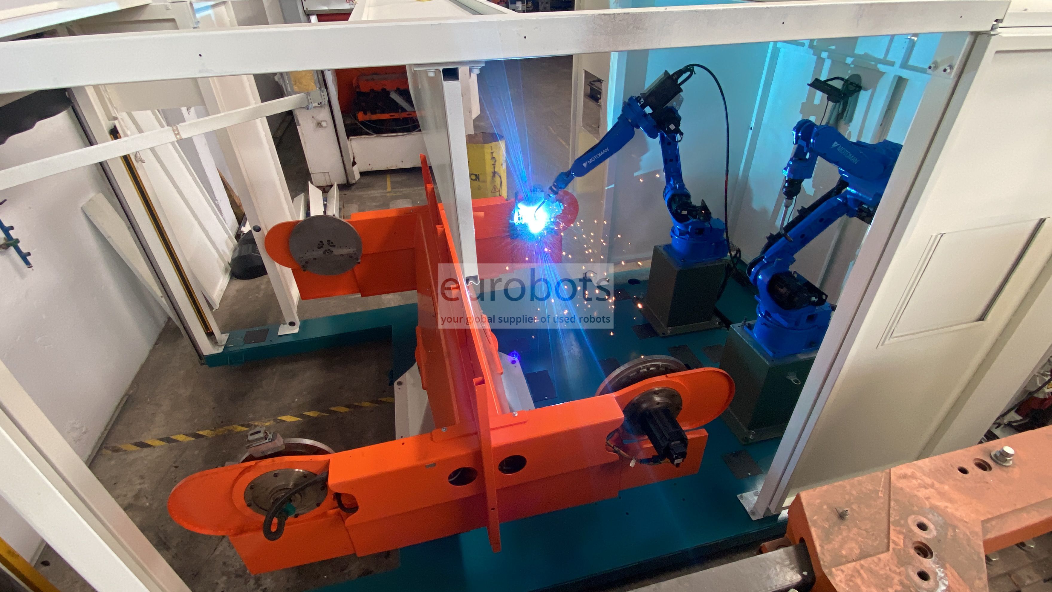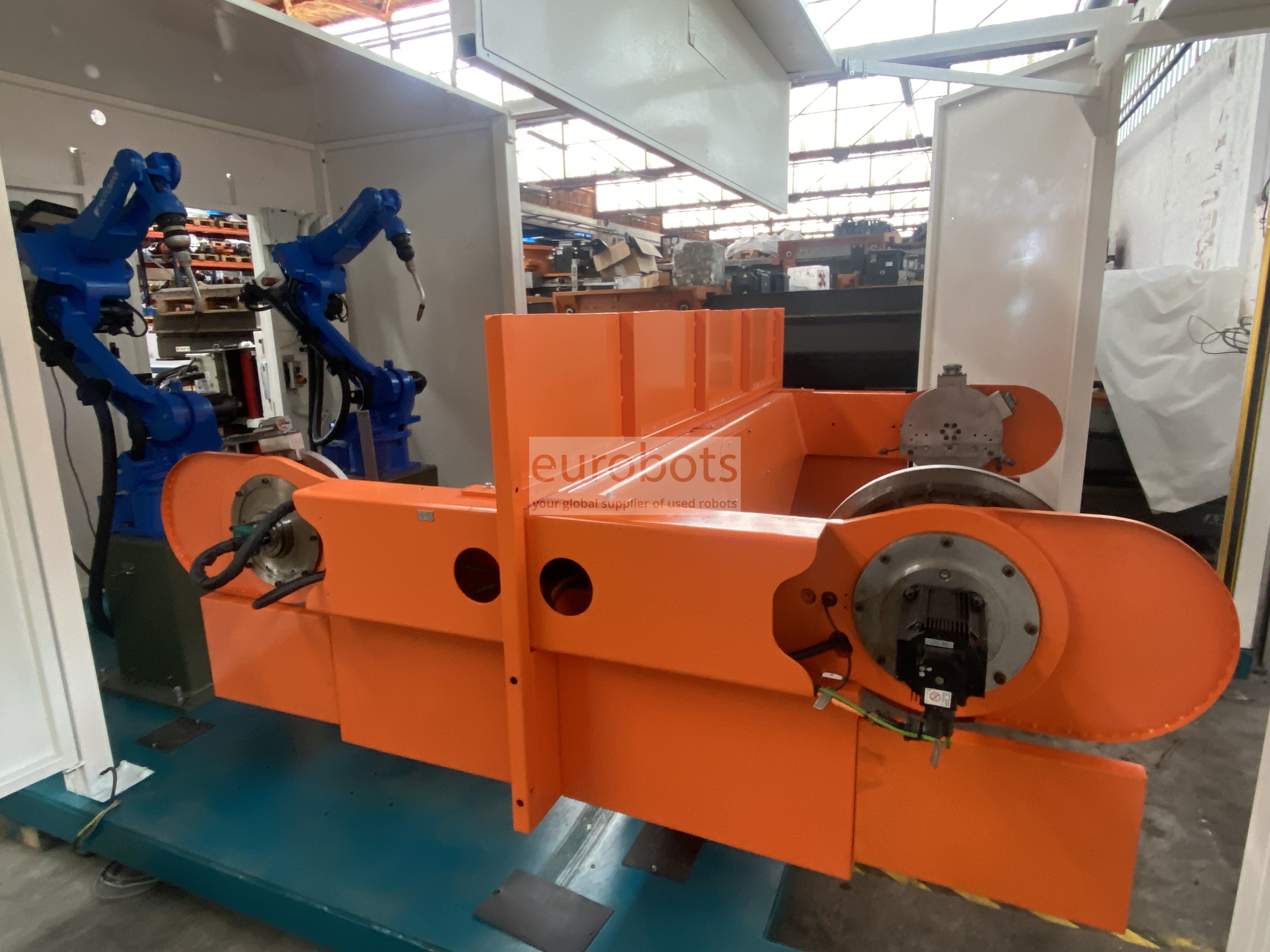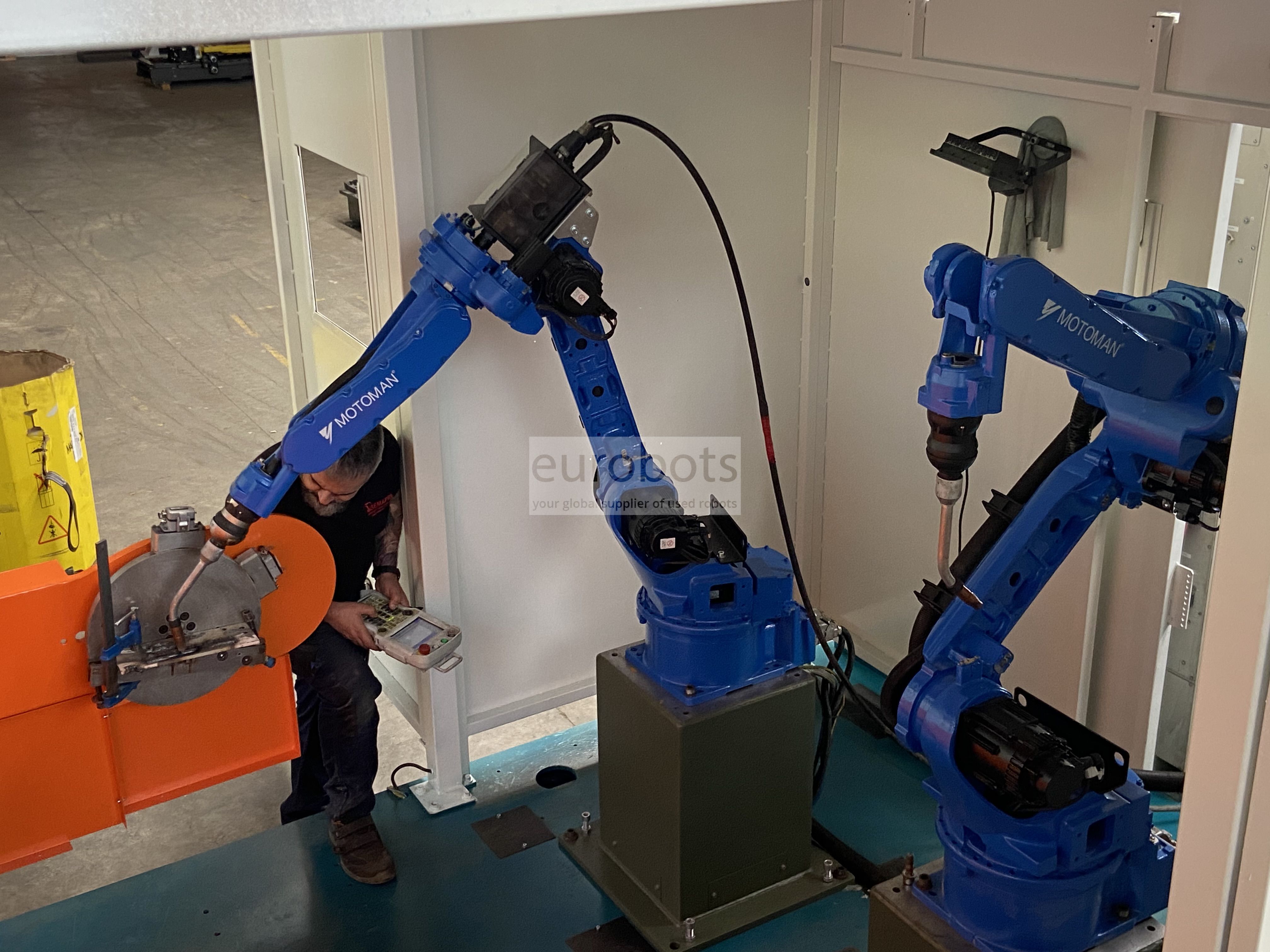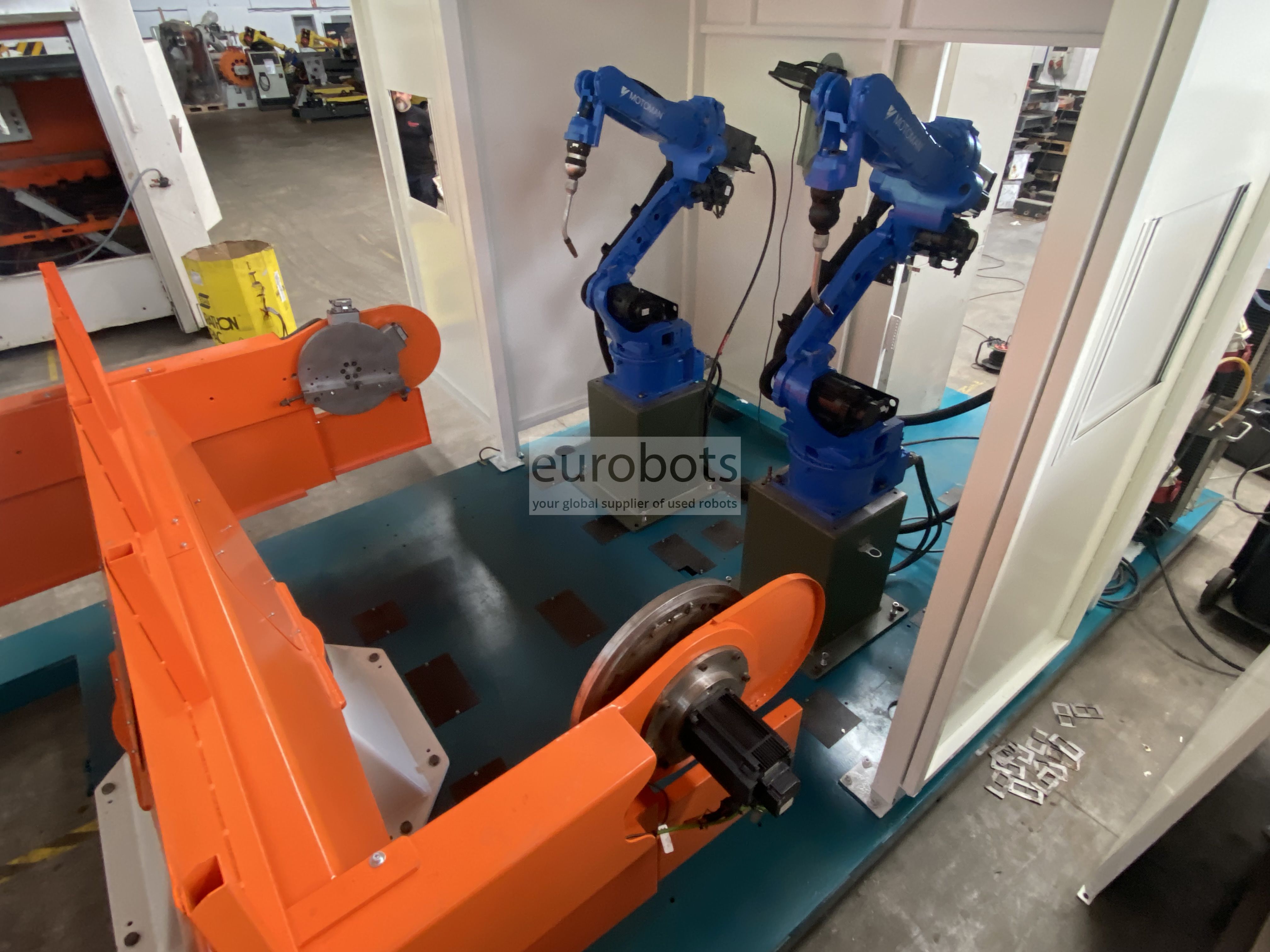- 2 x Motoman MA1400 工业机器人,6 轴,6 kg 有效负载,1,440 mm 水平臂伸展范围,重复性精度为 0.08 mm。